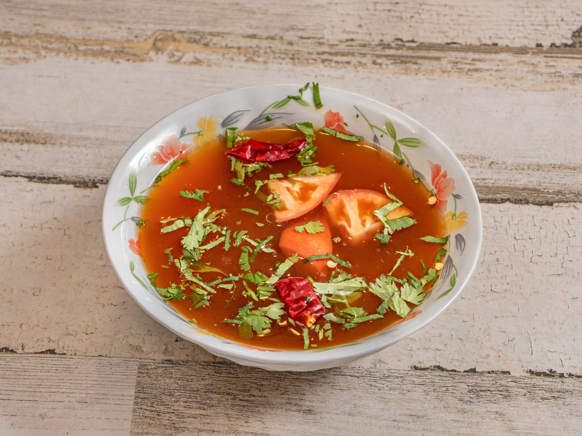South Indian tangy, peppery tamarind-based soup